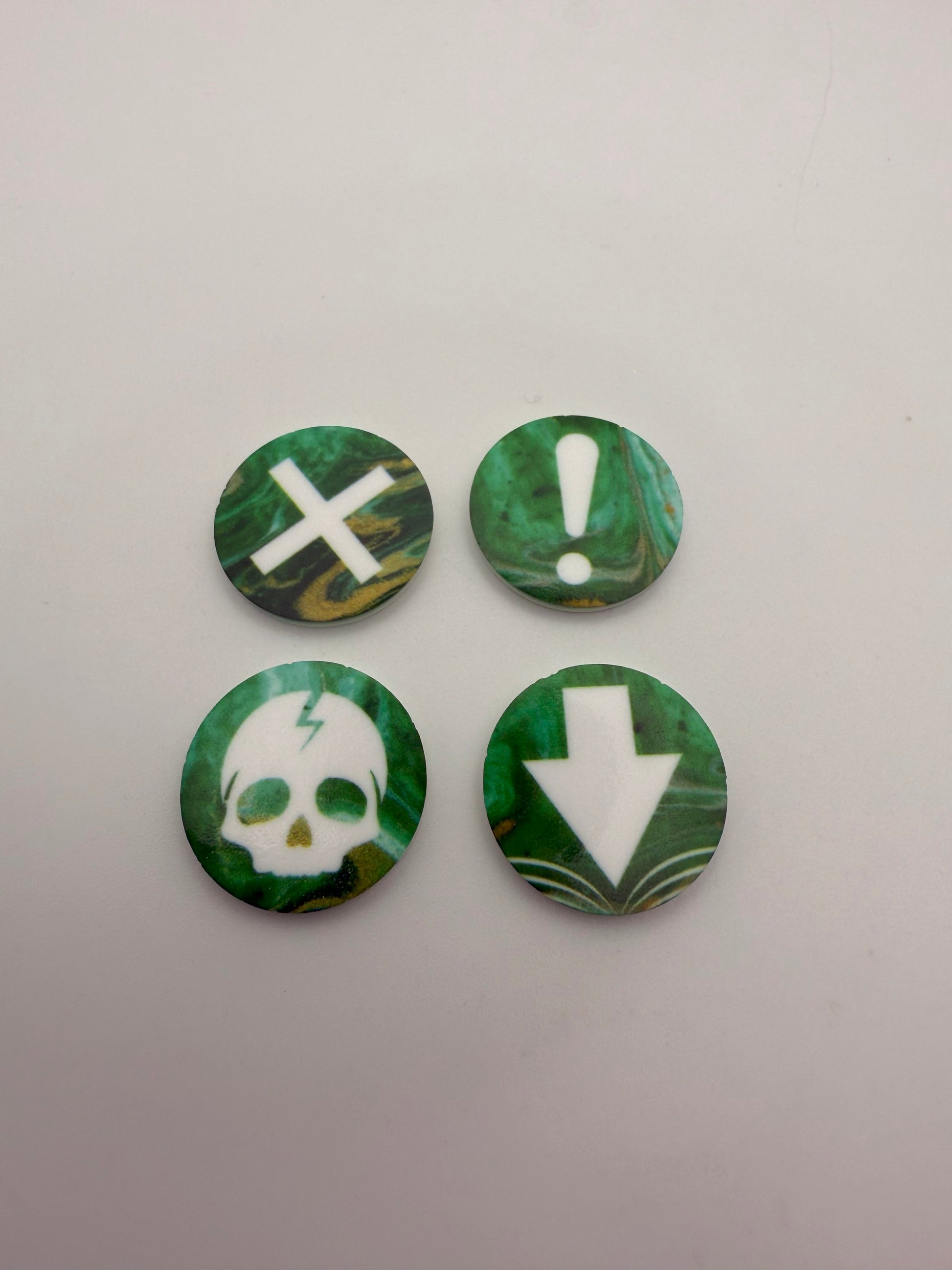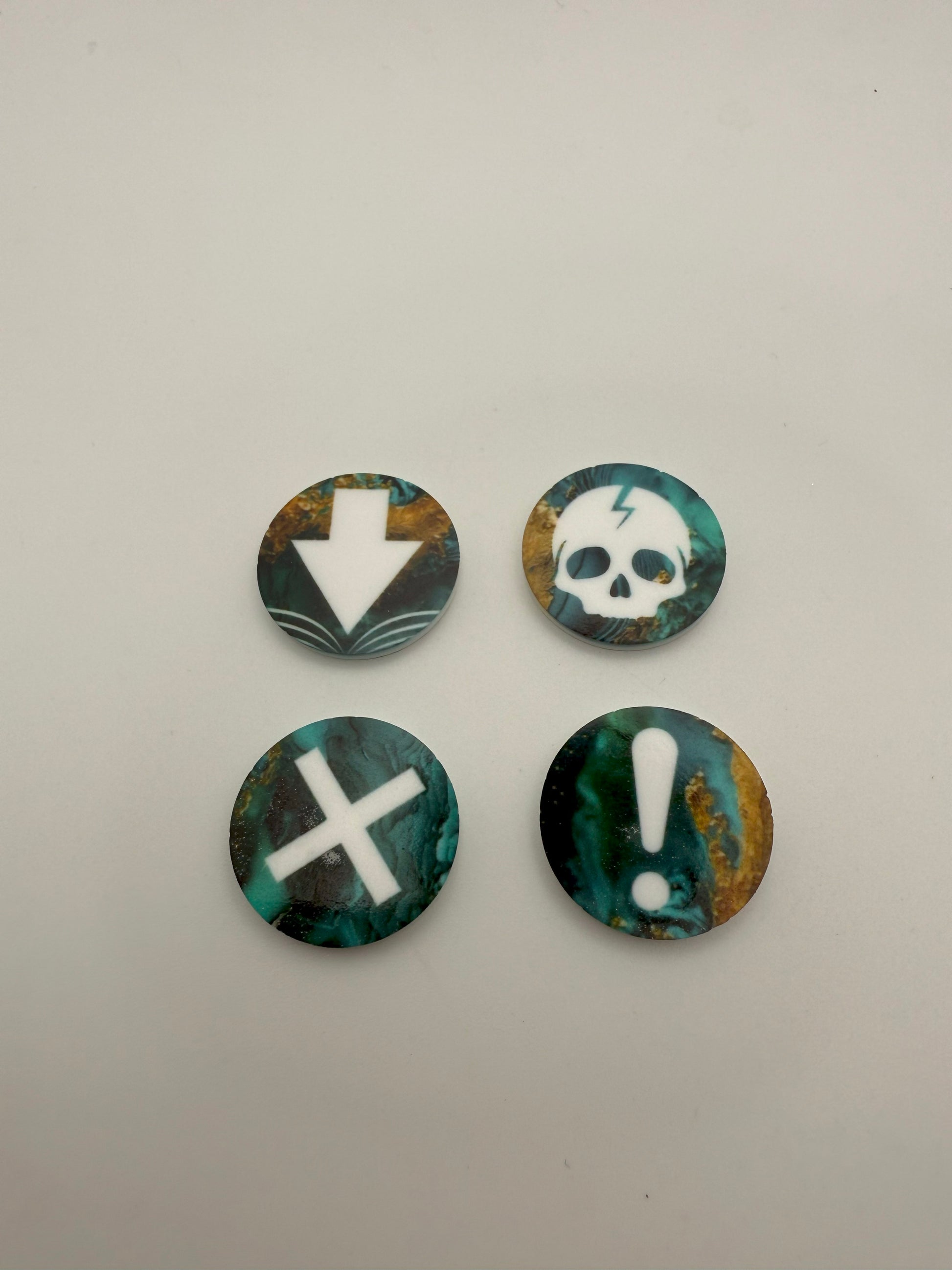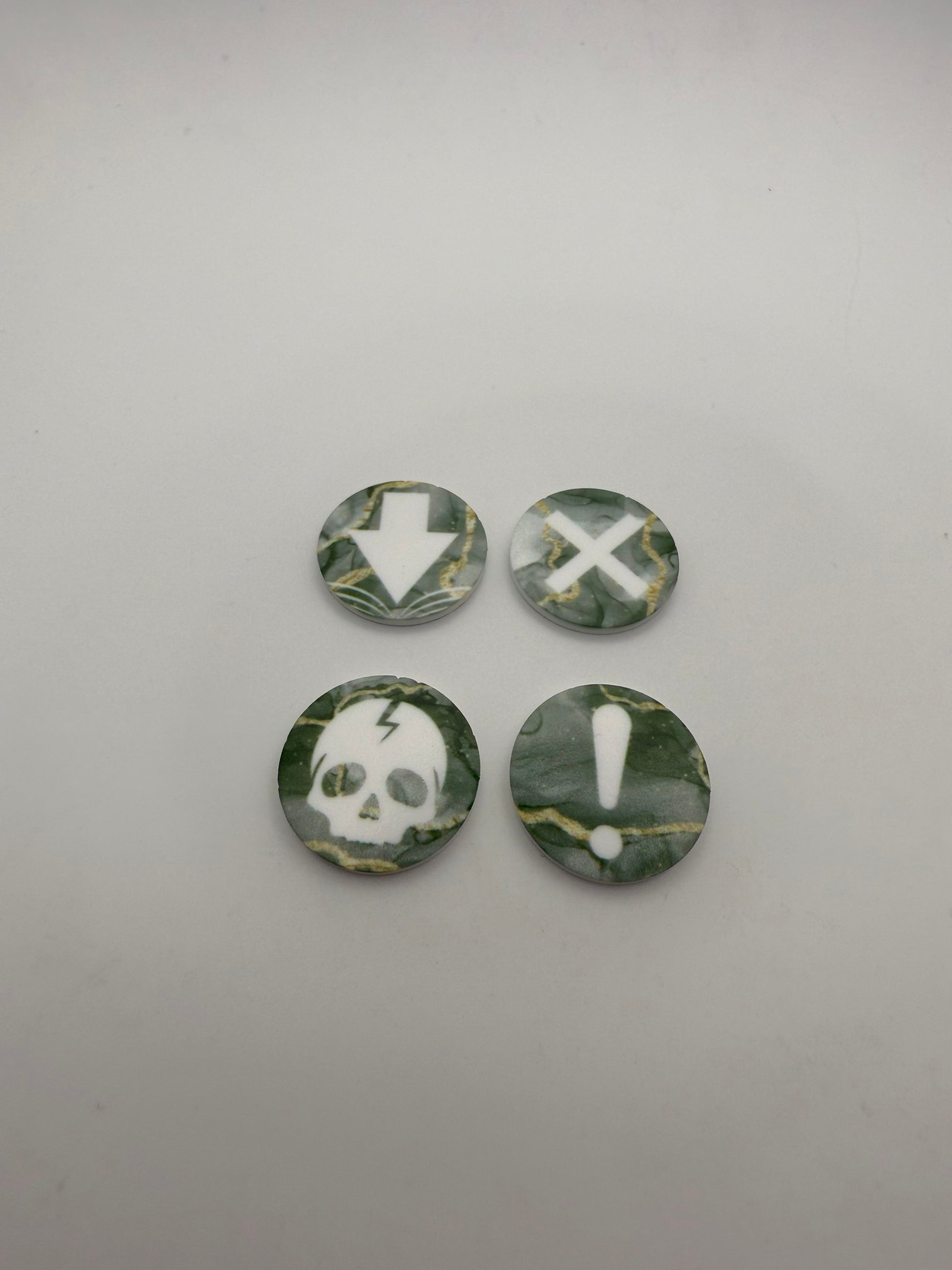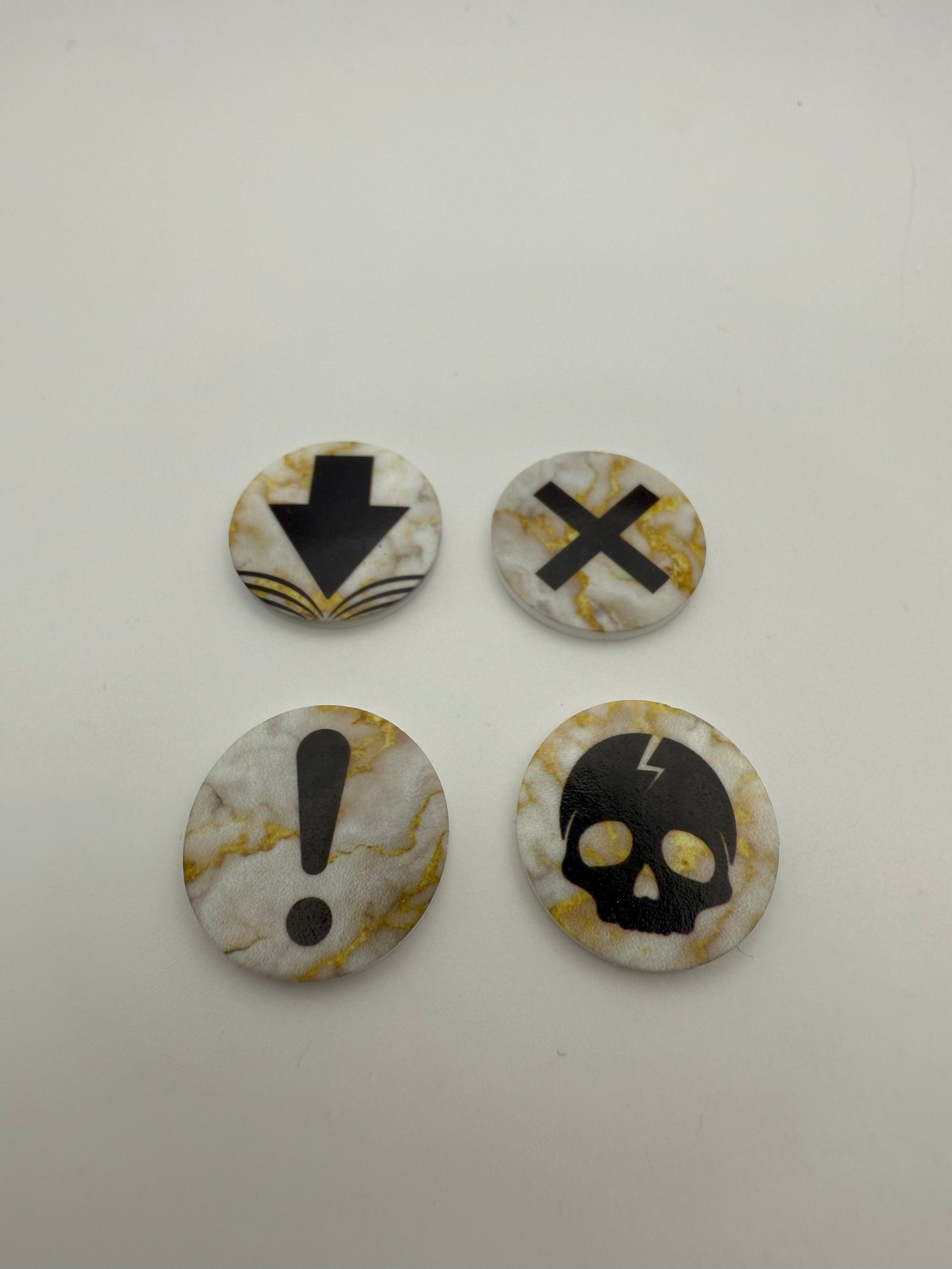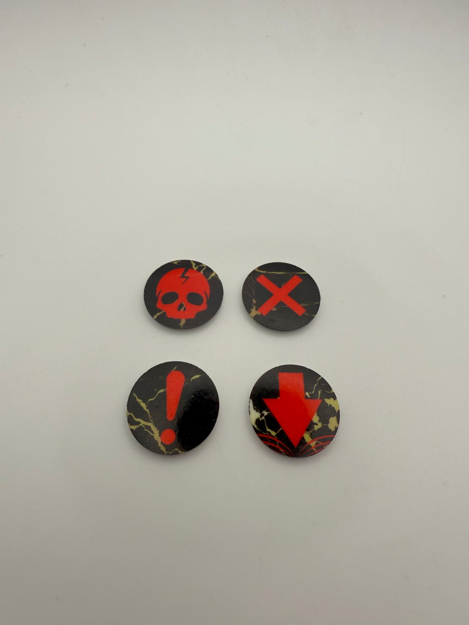 Never again will you ask 'Are these your tokens or mine?' at the end of a game! These status tokens for Heresy will withstand many a spilt beverage and will never let you forget a unit on the battlefield (unless you've had too many beverages)!